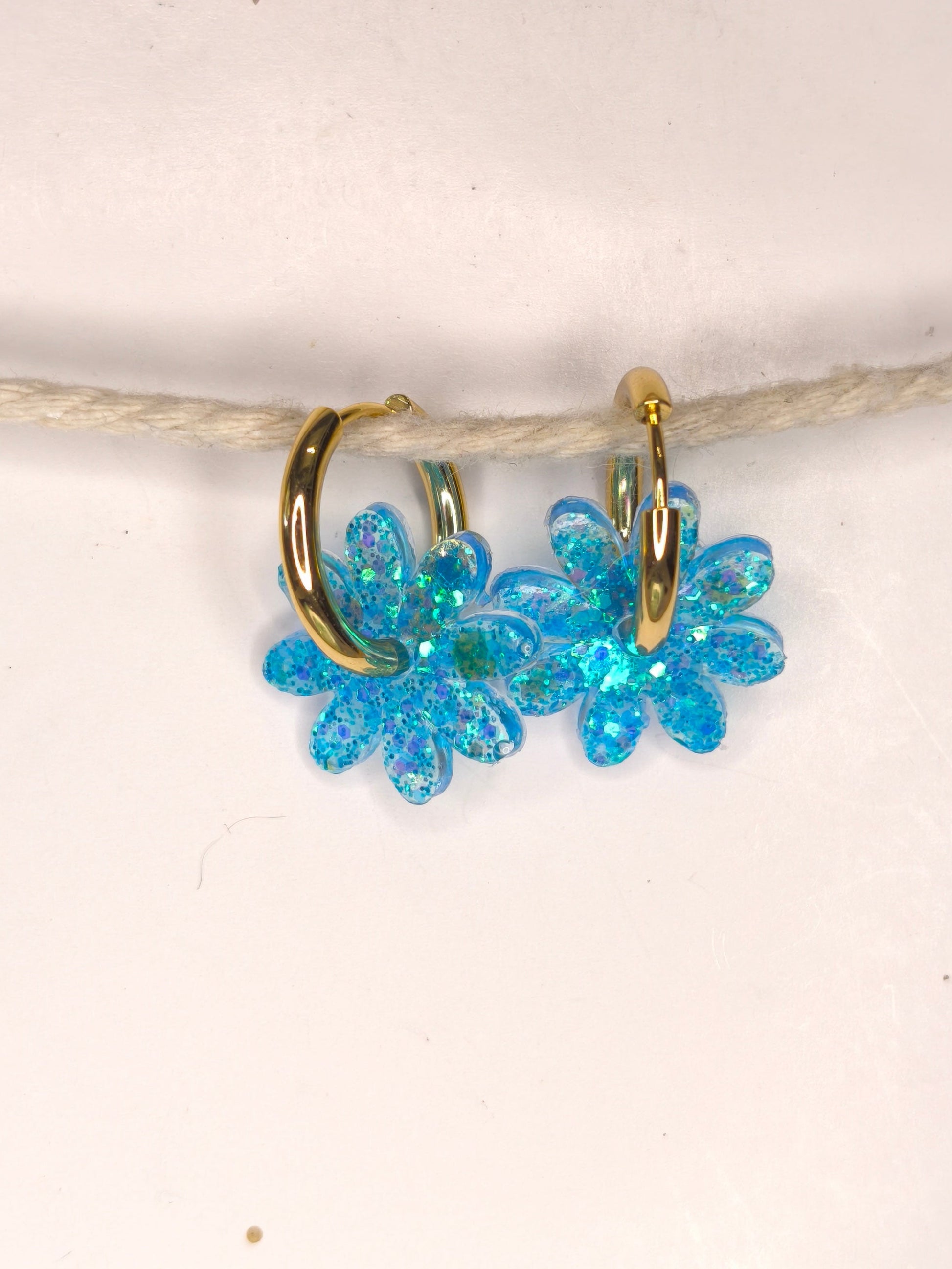 Des marguerites délicates, teintées du bleu profond des vagues de Biarritz.