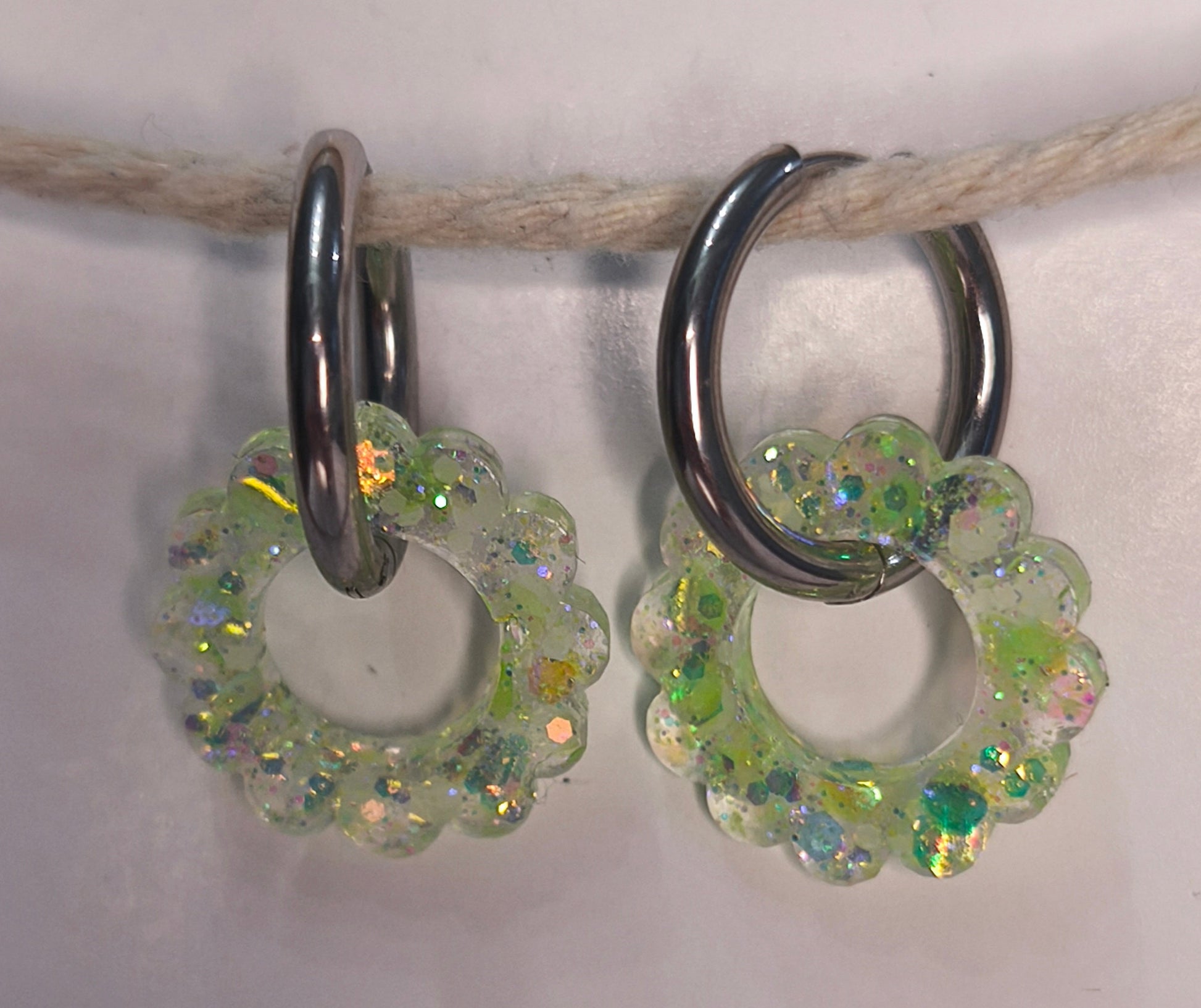 Les soleils en vert phosphorescent à paillettes diffusent une clarté joyeuse et vivante