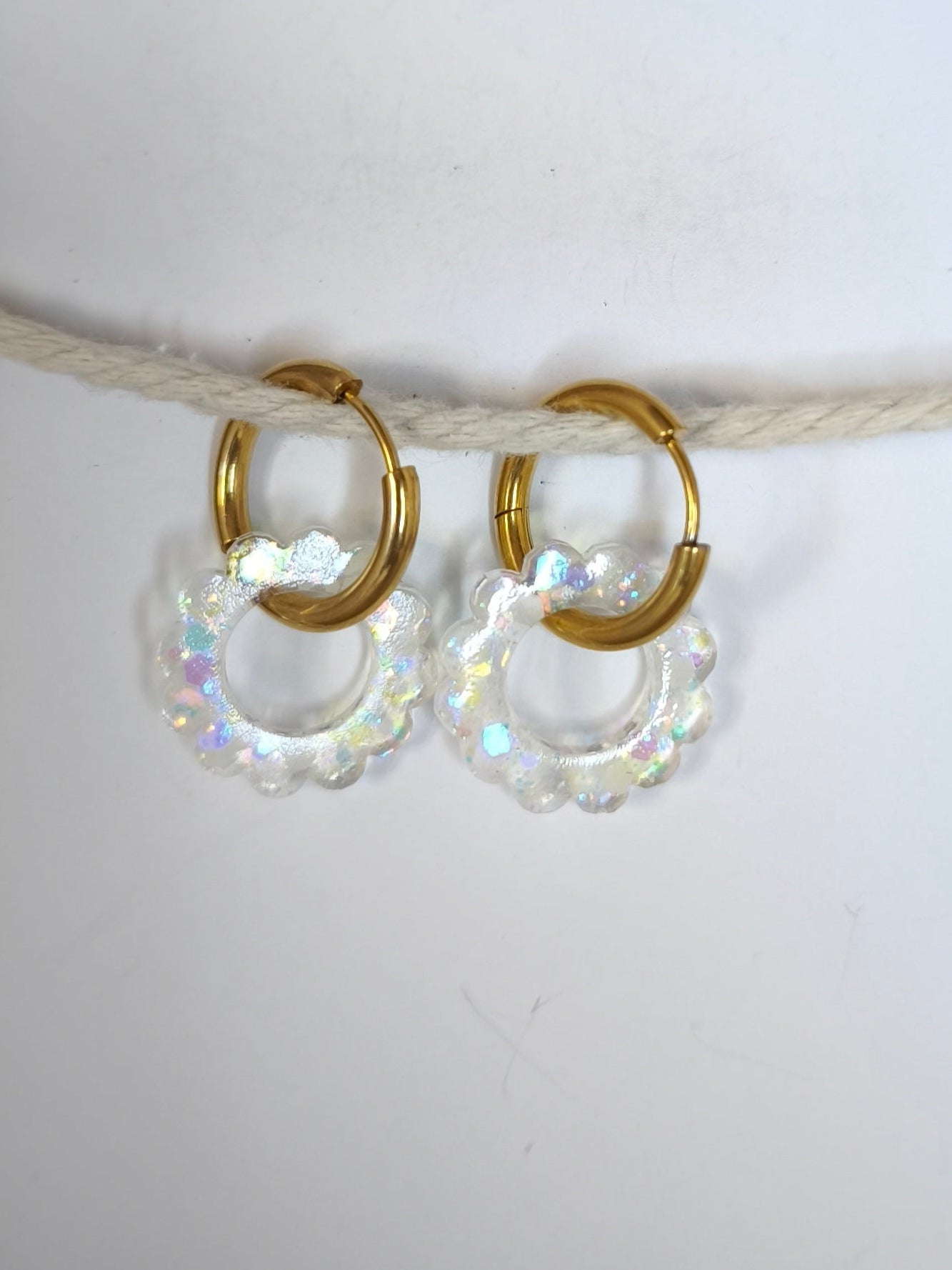 Les soleils transparents à paillettes blanches phosphorescentes évoquent un éclat radieux qui perdure