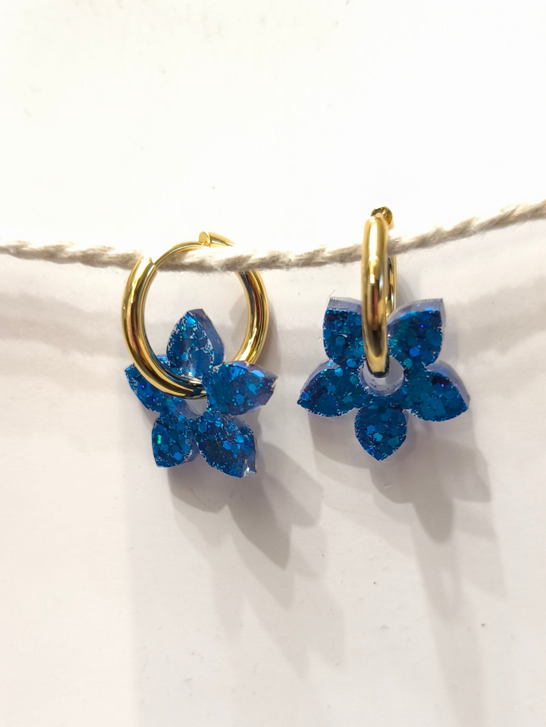 Un tiaré délicat et lumineux, aux paillettes bleues foncées scintillantes.